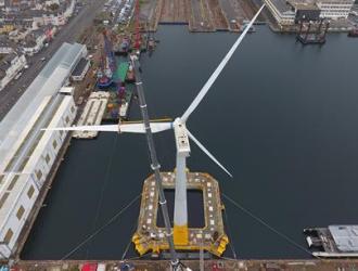 Η πιλοτική πλωτή ανεμογεννήτρια Floatgen εγκατέλειψε την αποβάθρα στο St Nazaire για να ξεκινήσει το ταξίδι της προς