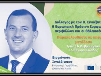 Διαδικτυακό διάλογο με τους Έλληνες πολίτες θα πραγματοποιήσει ο Επίτροπος Περιβάλλοντος, Ωκεανών και Αλιείας, Βιργκίνιους Σινκέβιτσους την Τρίτη 16/02/2021 στις 15:00 ώρα Ελλάδος.