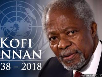 Τα Ηνωμένα Έθνη απέτισαν φόρο τιμής στον πρώην Γενικό Γραμματέα των Ηνωμένων Εθνών και βραβευμένο με Νόμπελ Ειρήνης Κόφι Ανάν, στις 20 Αυγούστου, τηρώντας ενός λεπτ