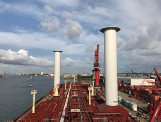 ΠερισσότεραΠεριστρεφόμενα κυλινδρικά ιστία για εκμετάλλευση αιολικής ενέργειας σε πλοίο της Maersk Tankers