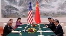 White House Senior Advisor for Clean Energy John Podesta and China's Foreign Minister Wang Yi speak during a bilateral meeting at the Great Hall of the People in Beijing, China, September 6, 2024. (…