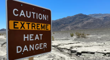 A sign warns visitors of extreme heat in Death Valley, California. Photograph: Reuters