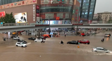 Heavy flooding has hit central China following unusually heavy rains, with the subway system in the city of Zhengzhou inundated with rushing water.