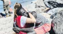 The image captured the raw humanity of the moment: a Red Cross volunteer tenderly consoling a Senegalese man moments…