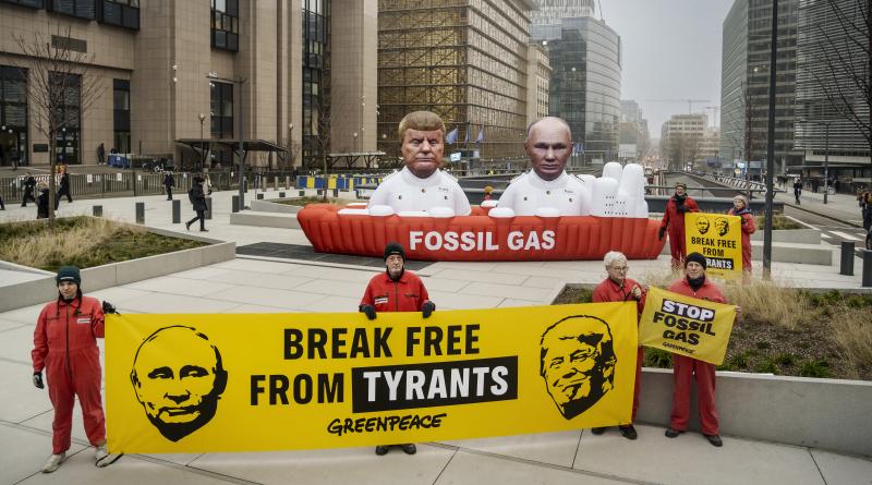 Η ΕΕ δεν πρέπει να αντικαταστήσει το ρωσικό αέριο με εισαγωγές από τις ΗΠΑ: όσο οι υπουργοί της ΕΕ επικυρώνουν την απαγόρευση των εισαγωγών ρωσικού αερίου, ακτιβιστές του βελγικού γραφείου της Greenpeace προειδοποιούν ότι το αέριο του Πούτιν δεν πρέπει να αντικατασταθεί με το αέριο του Τραμπ.