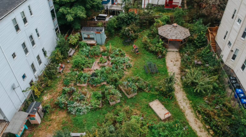 Cover photo: The Ellington Street Community Food Forest Garden fills a formerly empty lot in Boston’s Dorchester neighborhood. Credit: Dre Tejada