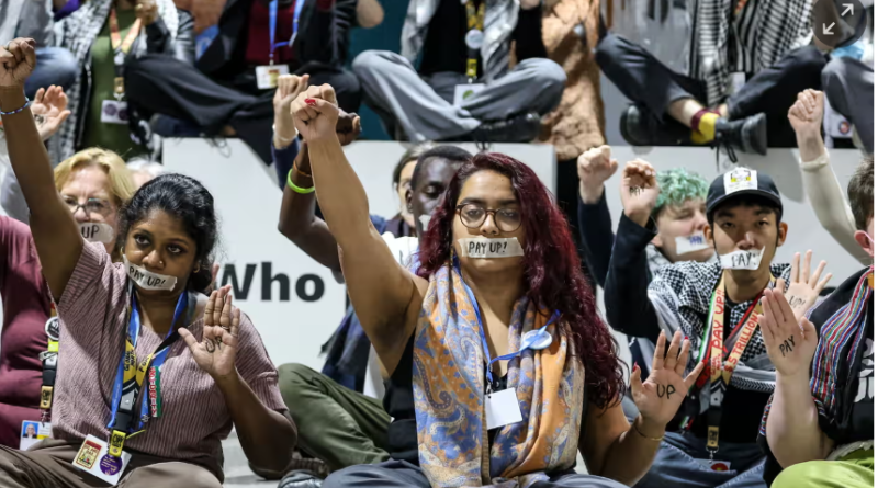 Cover photo: Activists stage a protest following the closing ceremony in Baku amid anger over the deal and the negotiation process Photograph: Dominika Zarzycka/SOPA Images/REX/Shutterstock