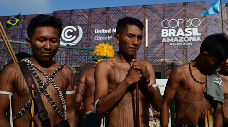 Cover photo:  Indigenous people from the Munduruku group stage a protest against infrastructure projects they believe threaten their land at the Cop30 entrance. Photograph: Pablo Porciúncula/AFP/Getty Images