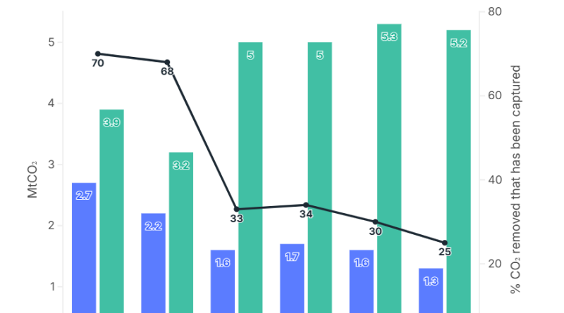 The latest data release from Chevron on its Gorgon carbon capture and storage (CCS) project, the world’s largest, showed the lowest annual amount of carbon dioxide (CO2) captured and stored since it started in August 2019. Falling CO2 injection rates have pushed up the effective costs for each tonne of CO2 captured, further weakening the project’s economics.