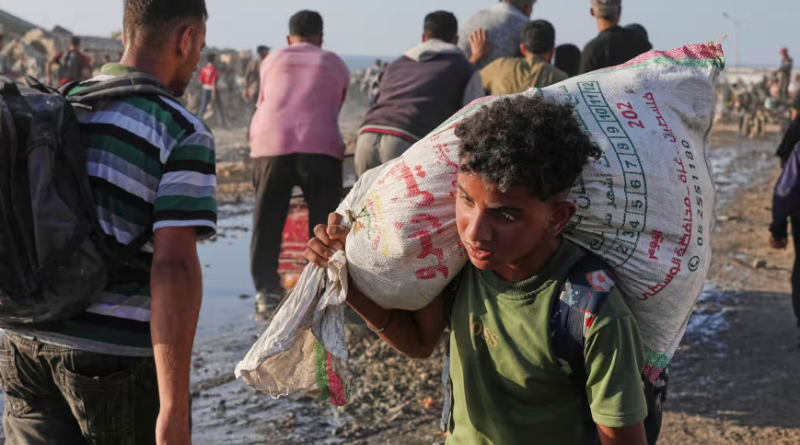 Cover photo:  A Palestinian boy carries food and humanitarian aid unloaded from a World Food Programme convoy in the northern Gaza Strip on 16 June. Photograph: AP
