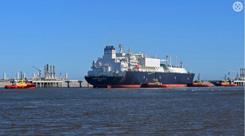 CAMERON, La.—For a ship the length of nearly three football fields, Energy Intelligence seemed to turn on a dime. With tugboats pushing and pulling at its bow and stern, the 295-meter liquefied natural gas tanker pivoted 180 degrees in the brackish waters of the Calcasieu Ship Channel in late February, preparing to refuel for a trip to the Netherlands.
