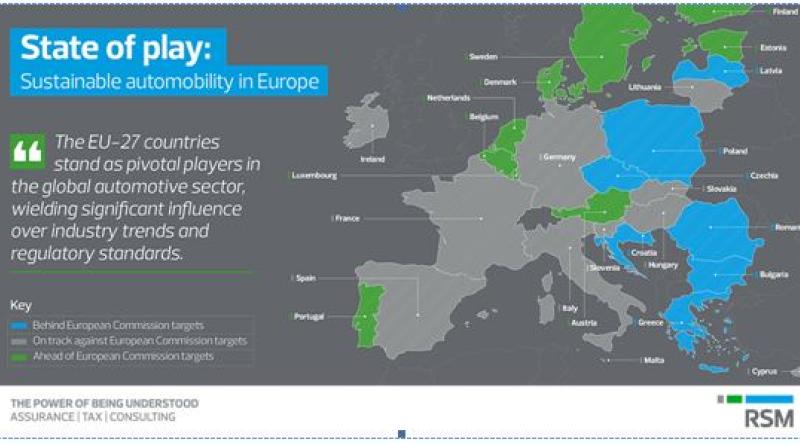Αθήνα, 17.07.2024 - Η πανευρωπαϊκή έκθεση της RSM, State of Play: Sustainable Automobility in Europe που αφορά την αξιολόγηση της μετάβασης στην πράσινη αυτοκίνηση συμπεραίνει ότι πάνω από το ένα τέταρτο των χωρών-μελών της ΕΕ, συμπεριλαμβανομένης και της Ελλάδας, κινδυνεύουν να μην επιτύχουν βασικούς στόχους που αφορούν την πράσινη αυτοκίνηση.