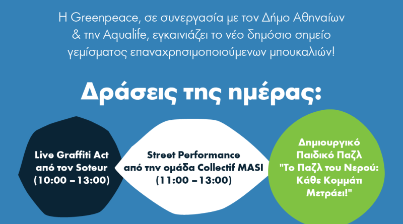 Η Greenpeace σε συνεργασία με τον Δήμο Αθηναίων και την Αqualife γιορτάζει την Παγκόσμια Ημέρα Νερού το Σάββατο, 22 Μαρτίου 2025, 10:00 – 14:00, στην πλατεία Κοραή.