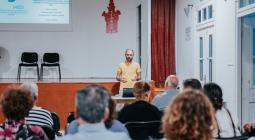 Ο Φανοίκος Σακελλαράκης, Συντονιστής του Προγράμματος για το Νερό στο MedINA, παρουσίασε τις εφαρμογές λίθινων αναβαθμών από το 2020 μέχρι σήμερα στα Κύθηρα, την Πάρο, την Ίο και τη Σίφνο και την προσέγγιση για την ανάπτυξη μεθοδολογιών για τη βέλτιστη χωροθέτηση τους, που λαμβάνουν υπόψη το ανάγλυφο, το γεωλογικό υπόβαθρο και το υδρογραφικό δίκτυο της λεκάνης απορροής.