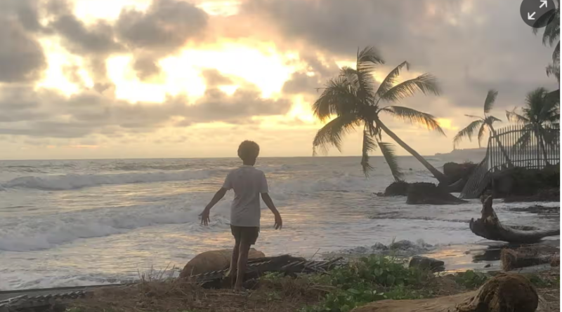 Kerry Anne Henry lives in a village of about 500 people near Pariva beach. She says people living in her village have begun to move inland due to the threat of rising seas and sand erosion.