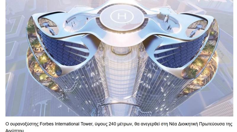 Ο ουρανοξύστης Forbes International Tower θα υψωθεί στην καρδιά του επιχειρηματικού κέντρου της Νέας Διοικητικής Πρωτεύουσας, όπου ήδη μετακομίζουν εγχώριες και διεθνείς εταιρείες.