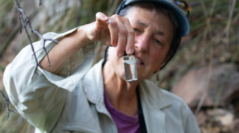 Cover photo: Kerry Schwartz, a retired hydrogeology faculty member and water resources educator at the University of Arizona, holds up a small sample of water from the spring in Alum Gulch. Credit: Esther Frances/Inside Climate News
