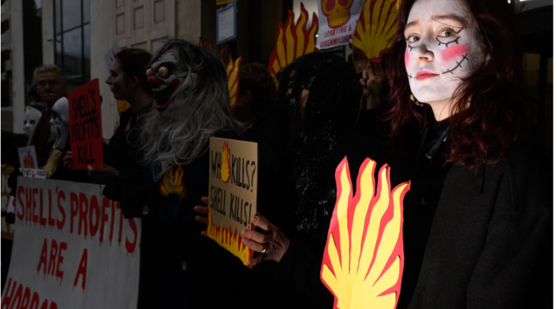 Robin Wells, the director of Fossil Free London, said: “Each quarter, Shell’s inordinate profits are announced, with no acknowledgment of the exploitation and destruction of communities across the world that enables this greed. We’re here today to say that Shell’s profits are a horror show. And that when it comes to big oil, it’s always trick or trick.”
