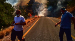 On the other side of the country, rescue boats off the island of Evia near Athens, picked up some 85 people from the beach as a wildfire engulfed the surrounding pine forests filling the sky with thick smoke.