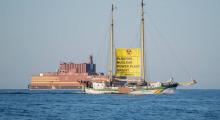 Η πιλοτική πλωτή ανεμογεννήτρια Floatgen εγκατέλειψε την αποβάθρα στο St Nazaire για να ξεκινήσει το ταξίδι της προς στην περιοχή δοκιμών SEM REV, στα 12 χλμ. από την ακτή.