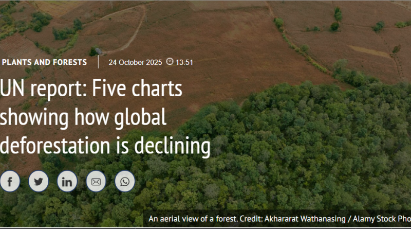 The report says this change was due to reduced deforestation in some countries and increased forest expansion in others. However, the rate of forest expansion has also slowed over time – from 9.9Mha per year in 2000-15 to 6.8Mha per year in 2015-25.