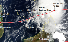 Meanwhile, the category 1-equivalent Severe Tropical Storm Honde formed in the Mozambique channel and travelled south-east, where it is skirting the southern tip of Madagascar.