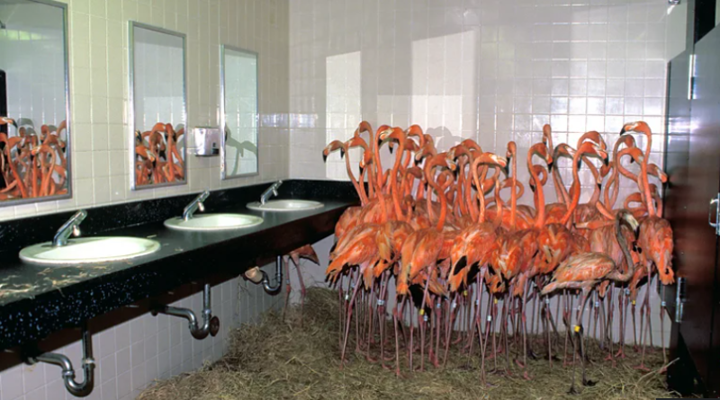 The same flamingo flock spent Hurricane George in 1998 and Hurricane Floyd in 1999 in the bathroom too, says Magill.