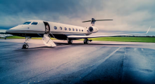 Private jets are up to 14 times more polluting, for each passenger, than commercial planes according to Transport & Environment. Photograph: Attila Bodzsoni/Alamy