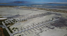 Empty docks at the Antelope Island Marina due to record low water levels on the Great Salt Lake, near Syracuse, Utah, in 2022. Photograph: Rick Bowmer/AP