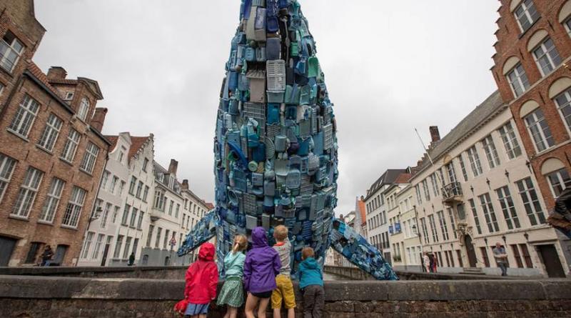 Προσπαθώντας να κάνει την κοινή γνώμη να συνειδητοποιήσει αυτό το πρόβλημα, η εταιρεία σχεδιασμού STUDIOKCA που εδρεύει στο Μπρούκλιν δημιούργησε αυτό το γλυπτό φάλαινας ύψους 11,5 μέτρων από 5 τόνους πλαστικών αποβλήτων που συλλέχθηκαν από τον Ειρηνικό Ωκεανό. Το γλυπτό αποτέλεσε μέρος της Triennial της Μπριζ, και θέλει να τονίσει πώς το πλαστικό μπορεί κάποια μέρα να ξεπεράσει τη θαλάσσια ζωή,