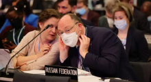 Delegates have walked out of a session at a climate summit in Bonn on Monday as a Russian official made a speech, in a sign of the geopolitical tensions overshadowing the negotiations.