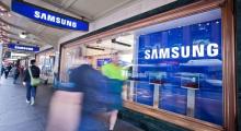 Activists protest at Samsung Electronics store in Sydney over debt purchase by affiliate Samsung Securities.