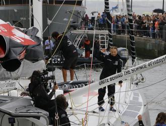 Flotilla of 17 boats escorts climate activist arriving for United Nations Climate Action Summit