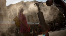 People cool off at a mist fountain in Prague, Czech Republic, on Wednesday. Photograph: Martin Divíšek/EPA