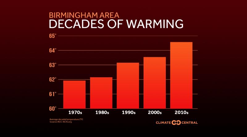 METHODOLOGY: Average decadal temperatures (1970s - 2010s) for 244 cities were calculated using data from the Applied Climate Information System. Decades with five or more years of insufficient daily data (>10% missing) were excluded from this analysis. State data in the National maps are from NOAA/NCEI’s National Temperature and Precipitation Maps.