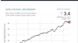 The time series below shows global distribution and variation of the concentration of mid-tropospheric carbon dioxide in parts per million (ppm). The overall color of the map shifts toward the red with advancing time due to the annual increase of CO2.