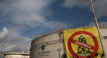 ATHENS - Greenpeace activists abseiled down the side of huge storage tank at a Hellenic Petroleum refinery near Athens on Thursday and unfurled a huge banner protesting at the company’s oil and gas…