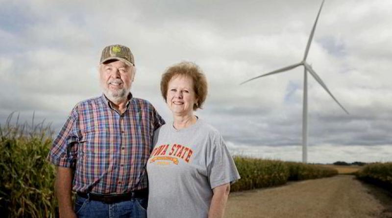 The Iowa Farm Bureau website calls wind “the newest and most biofriendly energy crop yet,” and uses the motto, “People. Progress. Pride.” When Iowa voters were asked to pick a new design for the state’s license plate in 2017, they chose one that shows a barn, the Des Moines city skyline — and a wind turbine.
