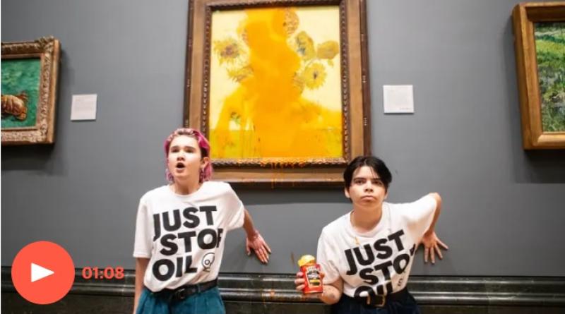 cover photo: Activists throw tomato soup on Van Gogh’s Sunflowers at National Gallery – video