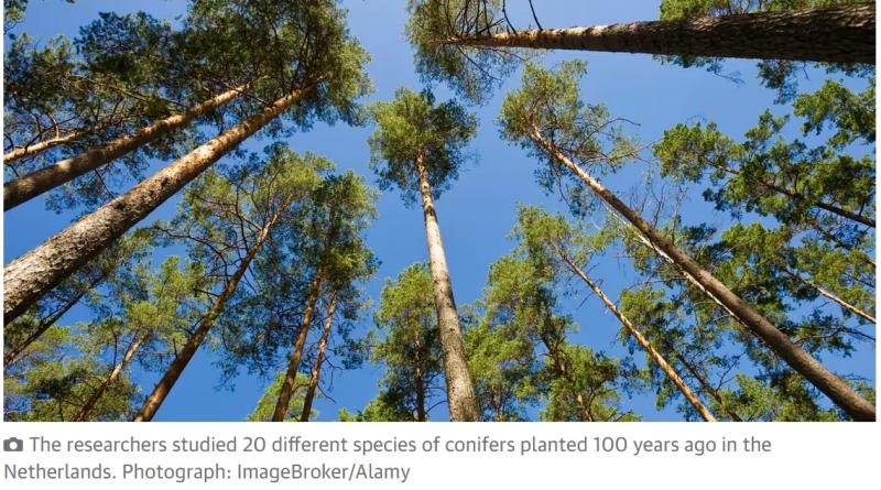Researchers studied 20 species of conifers planted 100 years ago in the same place in the Netherlands, taking tree ring samples to see how they did in droughts between 1970 and 2013. From the distance between the rings it is possible to tell how much each species’ growth was affected.