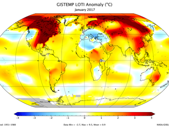 January 2017 was third-warmest January on record