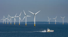 Turbines at Burbo Bank in Liverpool Bay. Windfarms generated 7.04TWh in August, up more than 46% on the same month last year. Photograph: UCG/Universal Images Group/Getty Images