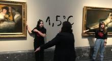 The two protesters did not damage the works but ‘caused their frames slight blemishes’ the Prado museum says