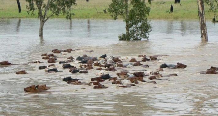 Φωτογραφίες στα μέσα κοινωνικής δικτύωσης εικονίζουν πολυάριθμα βοοειδή παγιδευμένα σε κομμάτια γης που δεν έχουν πλημμυρίσει, αλλά περιβάλλονται από νερό, ή νεκρά και ετοιμοθάνατα μέσα στη λάσπη.«Έπεσε βροχή ενάμιση χρόνου μέσα σε περίπου επτά ημέρες», λέει τηλεφωνικά στο Ρόιτερ ο κτηνοτρόφος Μάικλ Μπάλεϊ από το Μπιντούραν Στέισον δυτικά του Τζούλια Κρικ στην ύπαιθρο της Κουίνσλαντ.