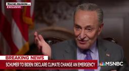 “Now, Trump used this emergency for a stupid wall, which wasn’t an emergency,” Schumer said in an interview with MSNBC’s Rachel Maddow that aired on Monday night. “But if there ever was an emergency climate is one. So I would suggest that they explore looking at climate as an emergency, which would give them more flexibility.”