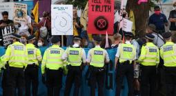 On Saturday, the climate activists gathered in Trafalgar Square for a “Citizens Assemble!” event to listen to speeches about the climate emergency. Attendees were asked to move on by police officers moving through the crowds.