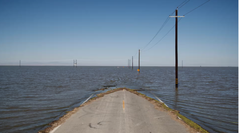Cover photo: Floodwaters rise in Tulare Lake basin, engulfing a road in Helm Corner, California, on 18 May 2023. Photograph: Caroline Brehman/EPA