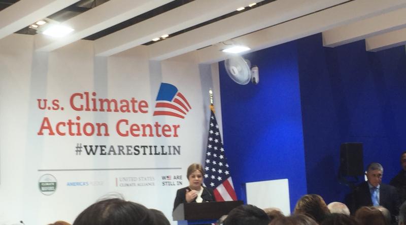 UNFCCC Exec Secretary Madame Patricia Espinosa expressing the appreciation of the UN for the unwavering support of Michael Bloomberg and the other America to the climate talks at te WE ARE STILL IN Pavilion in Madrid.