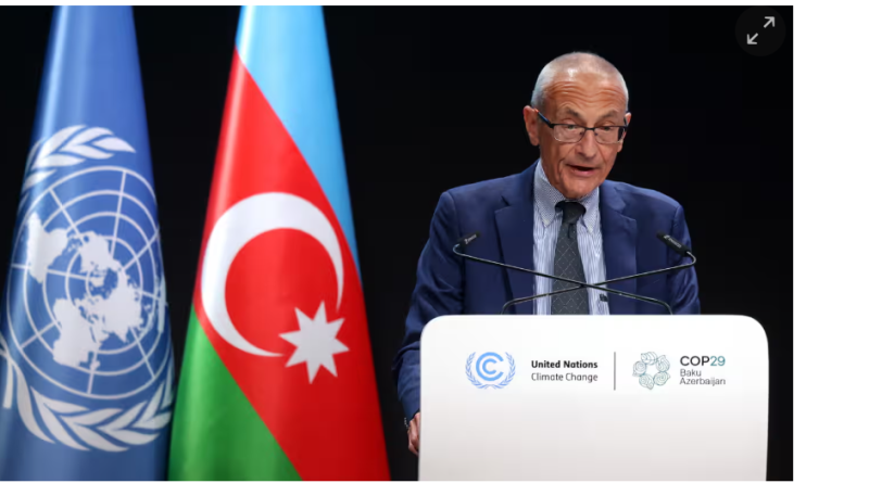 Cover photo: The US climate envoy, John Podesta, delivers a speech on behalf of Joe Biden during day three of Cop29 in Baku, Azerbaijan, on Wednesday. Photograph: Sean Gallup/Getty Images