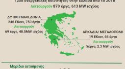 - Τον Νοέμβριο 2022, ο αριθμός των ενεργειακών κοινοτήτων στην επικράτεια παρουσιάζει ανοδική πορεία, με 1,406 ενεργές ενεργειακές κοινότητες (αύξηση 36% συγκριτικά με τον Νοέμβριο 2021) και έργα συνολικής εγκατεστημένης ισχύος 802.71 MW. Σημαντικό μερίδιο ανήκει στις λιγνιτικές περιοχές της Δυτικής Μακεδονίας όπου βρίσκονται 261 ενεργειακές κοινότητες και λειτουργούν συνολικά 101 έργα ισχύος 63.03 MW. Αντιθέτως, η δυναμική των ενεργειακών κοινοτήτων στην Περιφερειακή Ενότητα Αρκαδίας είναι σαφώς ασθενέστερη. Συνολικά έως τον Νοέμβριο του 2022 είχαν ιδρυθεί 21 ενεργειακές κοινότητες στην Αρκαδία, και μόλις 2 από αυτές στη Μεγαλόπολη, ενώ λειτουργούσαν 9 έργα ενεργειακών κοινοτήτων ισχύος 5.29 MW.